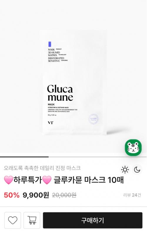 [공식몰] 브이티 브랜드데이 글루카뮨 마스크 (10매) (9,900원/무배) > 국내핫딜