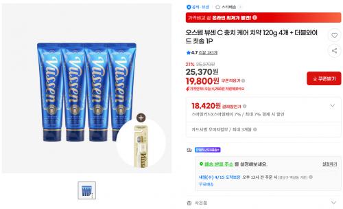 치약 4개에 와이드 칫솔까지 증정인데 2만원 후반대면 개당 단가가 나쁘지 않네요.
