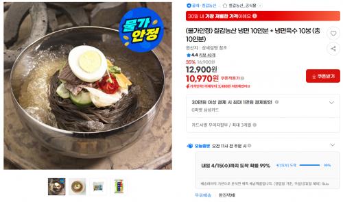 [지마켓] 칠갑농산 냉면 10인분 + 육수 10봉 (10,970원/무료배송) > 국내핫딜