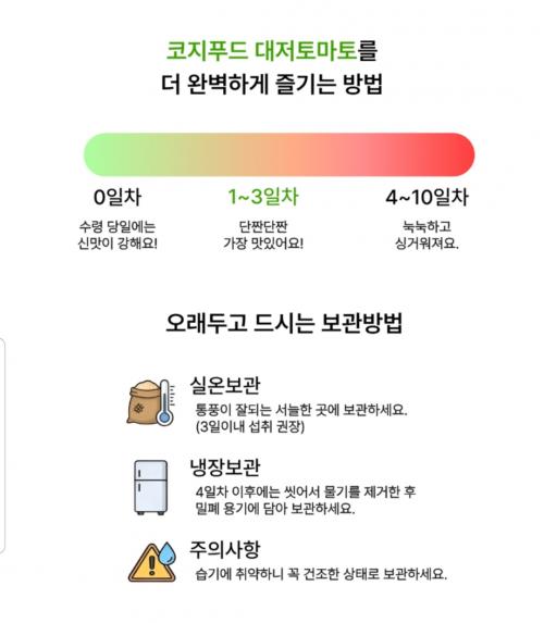 대저토마토 퀄리티 낮은곳이 많은데 물러지기 전에 갓 수확한걸로 배송오니 후숙해서 특유의 짭잘한 감칠맛도 느낄 수 있습니다