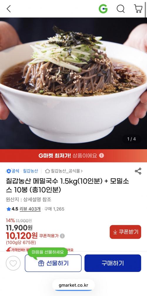 여름마다 칠갑농산 메밀은 무조건 쟁여두고 먹는데 마침 특가 떴네요. 10인분에 소스까지 다 포함해서 만 원 초반대면 가성비 진짜 미친 수준이네요