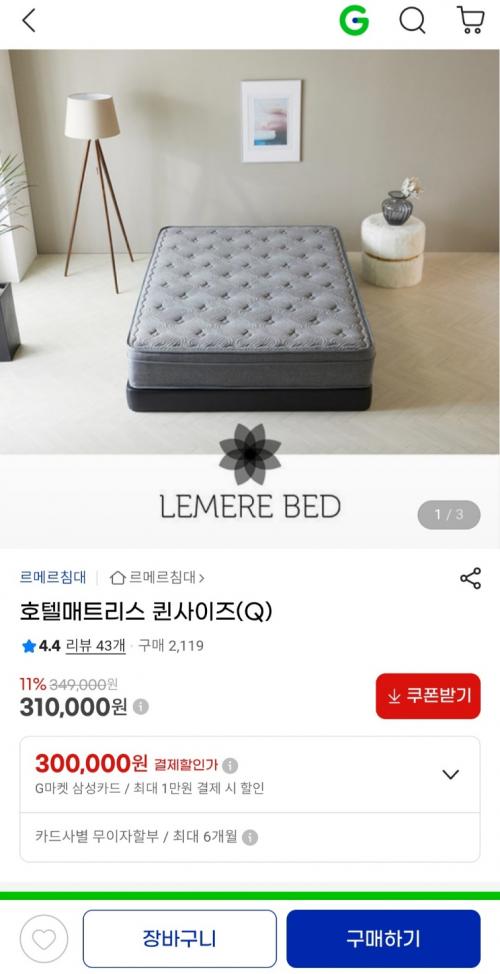 [지마켓] 호텔매트리스 퀸사이즈(Q) 310,000원 > 국내핫딜