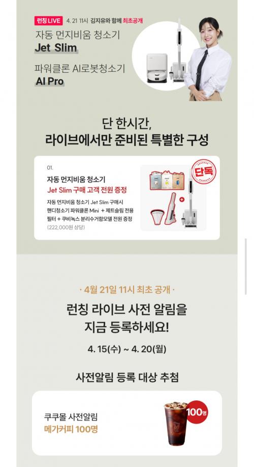 쿠쿠 청소기 런칭 기념 구매하면 핸디청소기 + 필터 + 분리수거함 증정하는데
