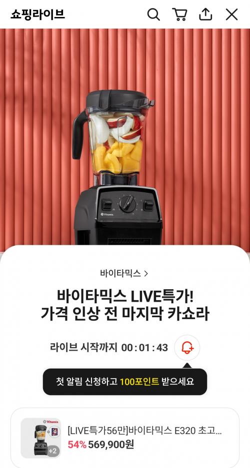 [카카오] 바이타믹스 E320 초고속 블렌더 믹서기 2L (569,900원/무료) > 국내핫딜