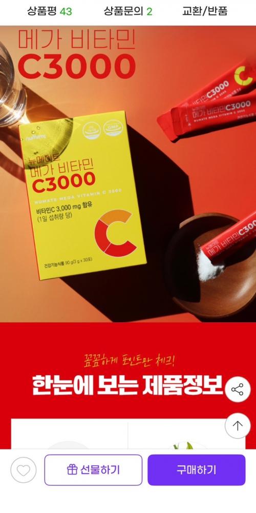 [지마켓] 고함량 메가도스 비타민C 3000mg 6개월분 + 유산균 30포 선착증정 (23,970원/무배) > 국내핫딜