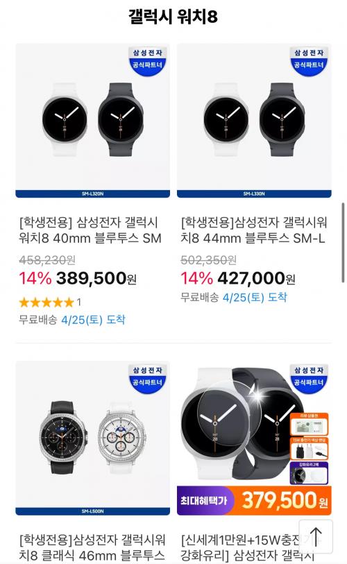 학생인증 가능한 분들 기준으로 갤럭시 웨어러블 제품들 할인 들어갔네요