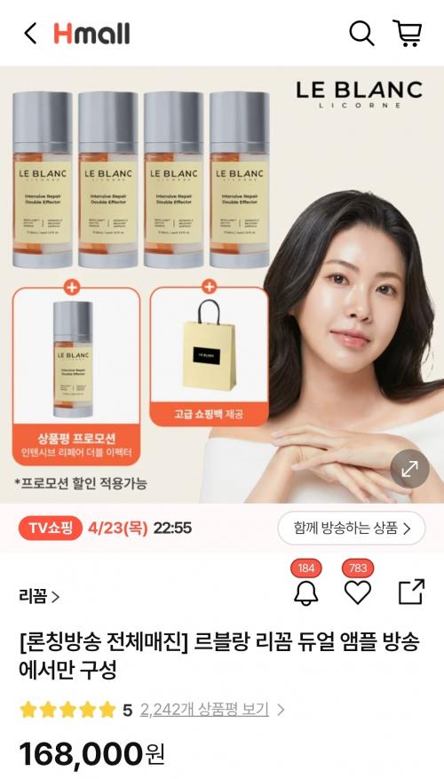 [H몰]르블랑 리꼼 듀얼 앰플 60ml*4병+1병 총5병(168,000원/무배) > 국내핫딜