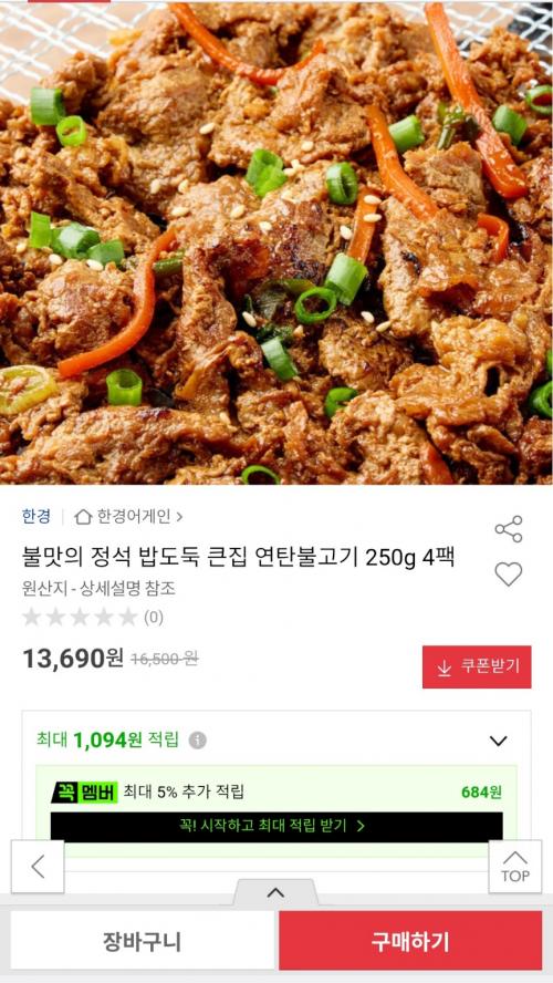 [옥션] 연탄불고기 250g 4팩 (13,690원 / 무료배송) > 국내핫딜