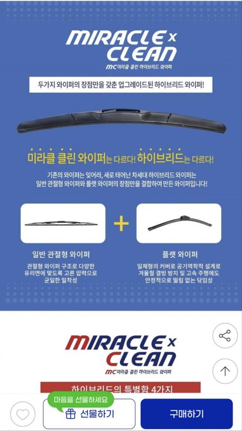 [지마켓] 미라클 하이브리드 와이퍼 2+2 (8,930원/무료) > 국내핫딜