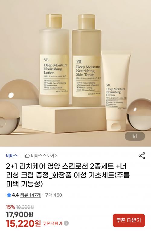 [지마켓] 비바스 딥모이스처 스킨로션(+크림증정) (15,220원/무배) > 국내핫딜