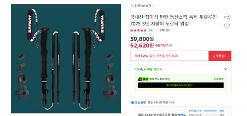 [옥션] 국내산 접이식 등산스틱 52,620원