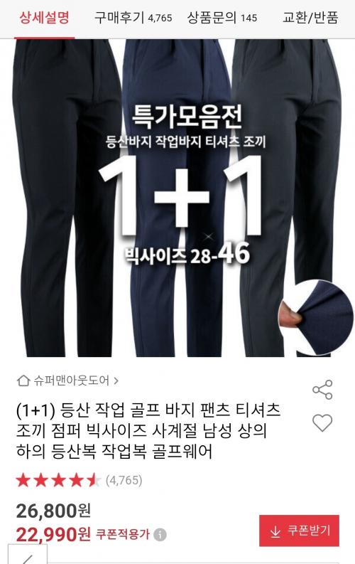 [옥션]등산 작업 골프 바지 팬츠 티셔츠 1+1(22,990원/무배) > 국내핫딜