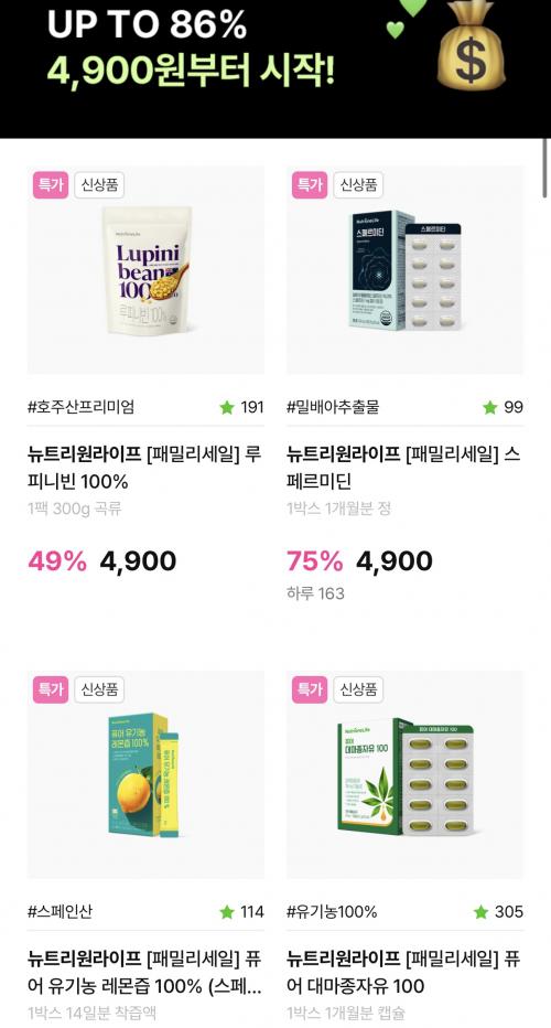 글루타치온 7.900원 / 레몬즙,루피니빈 4,900원