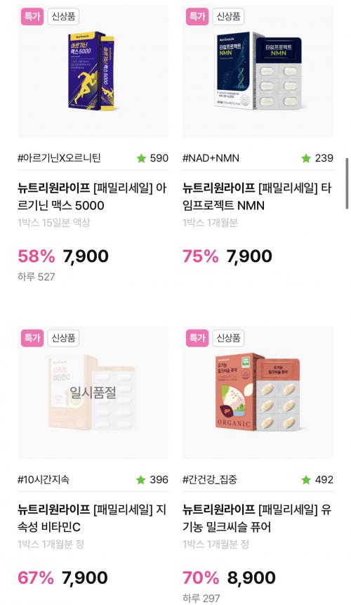 저분자콜라겐,히알루론산 7,900원등