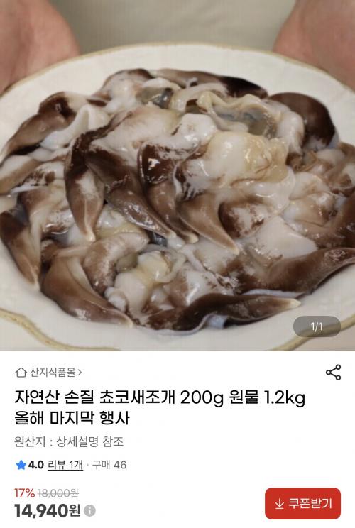 당일조업한 쵸코새조개 14시 전 주문하면