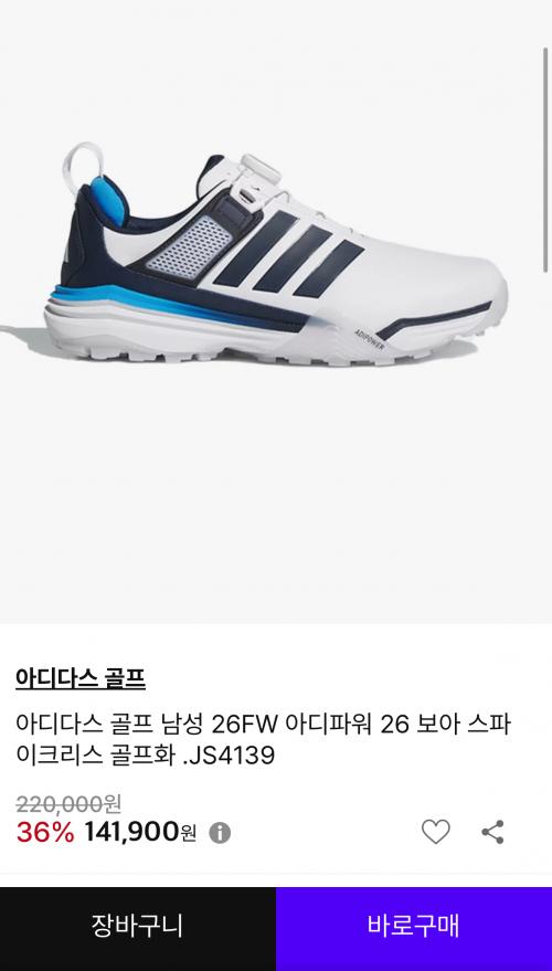 [패션플러스] 아디다스 골프 아디파워 26 보아 스파이크리스 골프화 (146,300원/무료) > 국내핫딜