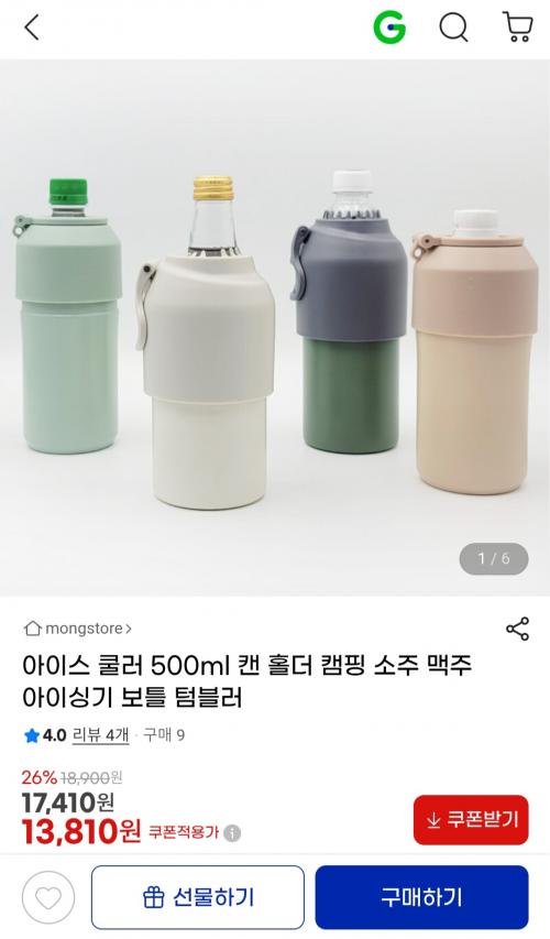 [지마켓] 아이스 쿨러 500ml (13,810원 / 무료배송) > 국내핫딜