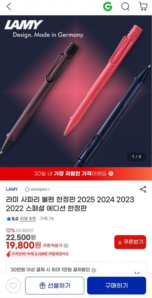 [지마켓] 라미 사파리 볼펜 2025 2024 2023 2022 스페셜 에디션 한정판 19,800원 > 국내핫딜