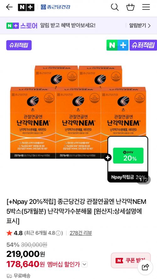 알림쿠폰10%+5% 적용후 네이버 플러스앱에서