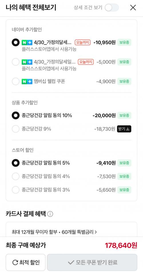 가정의달쿠폰5% 받으면 178,640원 나와요!