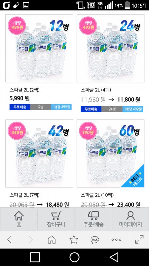 스파클 생수 배달 트럭으로 오기 때문에 많이 주문해도 미안하지 않죠