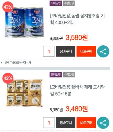 비할인 상품이나 할인폭이 10프로 정도로 낮은 상품들은..