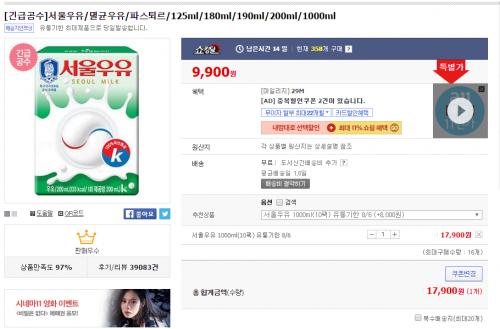 저희집은 많이먹어서 1000ml 짜리로만 시키다보니...매일보다 서울이 나은거같아서요 ㅠㅠ | ||