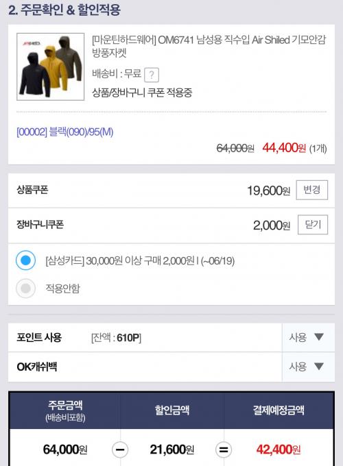 레저/스포츠 5만원이상 1만원 쿠폰 적용하면 44,400원이고 장바구니 쿠폰 가지고계시면 추가할인됩니다.