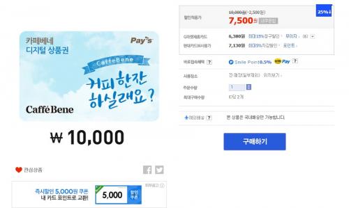 최근 페이지에 카페베네 7,000원짜리 딜 올라왔습니다.
