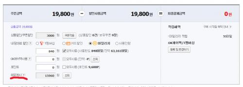 저도 요렇게 주문해서 14100원인데 저번에 아웃백 상품권 산게 500원 포인트 들어와서 13600원 구매했네용 감사합니다 | ||