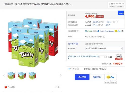24팩 기준으로 무배라 좋네요 굿~!! | ||