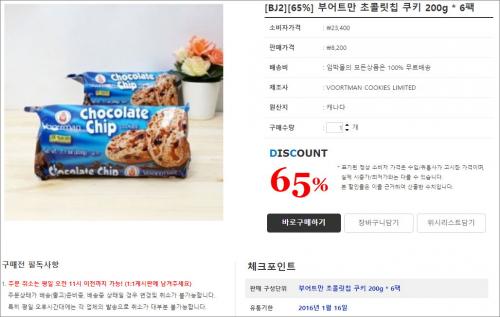 캐나다 부어트만 초콜렛칩 쿠키 6팩이 무배 8,200원 입니다.