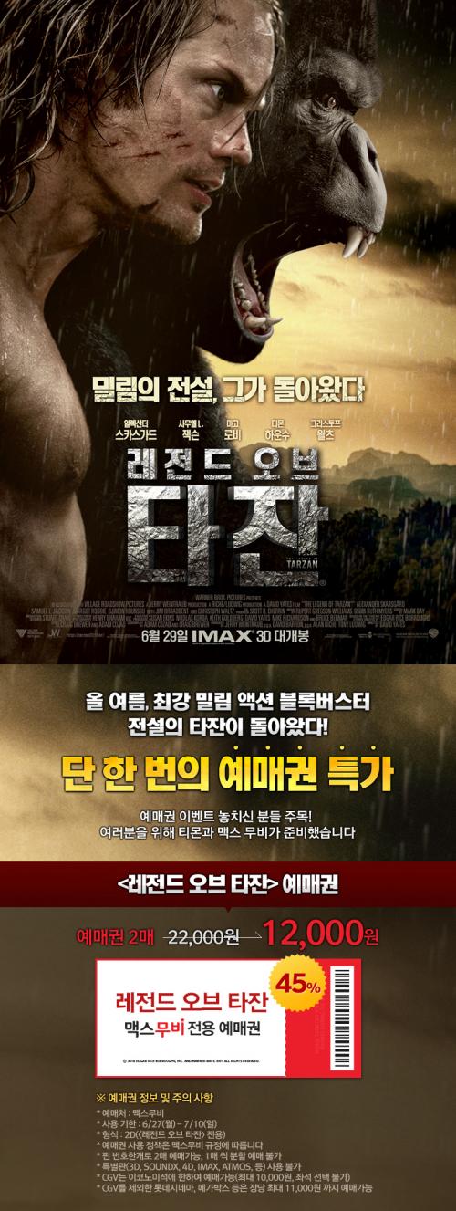 티몬에서 레전드 오브 타잔 2인 예매권 파네요.