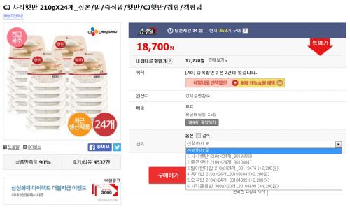 햇반 쿠폰적용하고 T멤버십 할인받으면 가격 괜찮게 나오네요