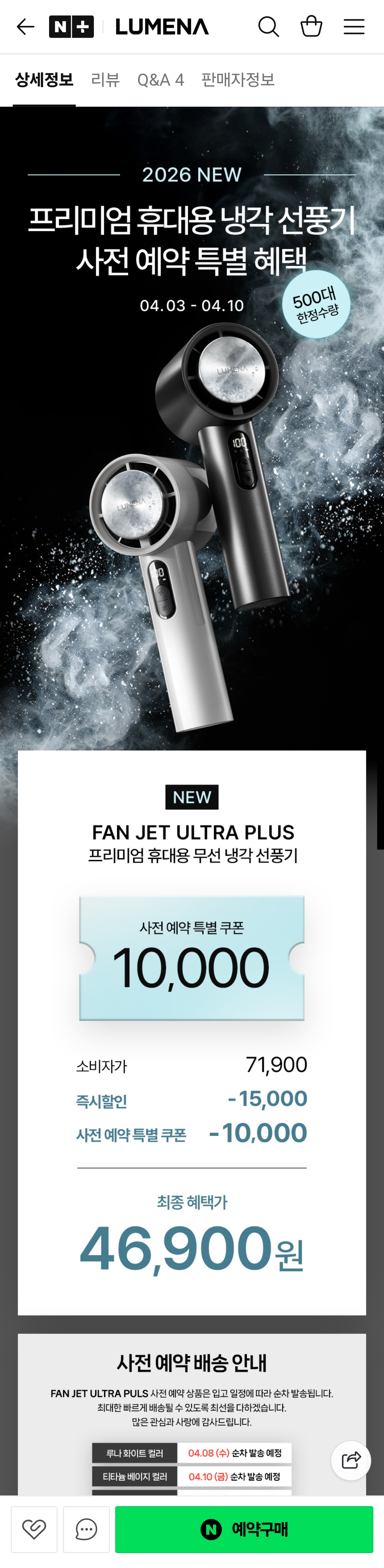 [네이버] 루메나 프리미엄 냉각선풍기 FAN JET ULTRA PLUS (46,900/무배)