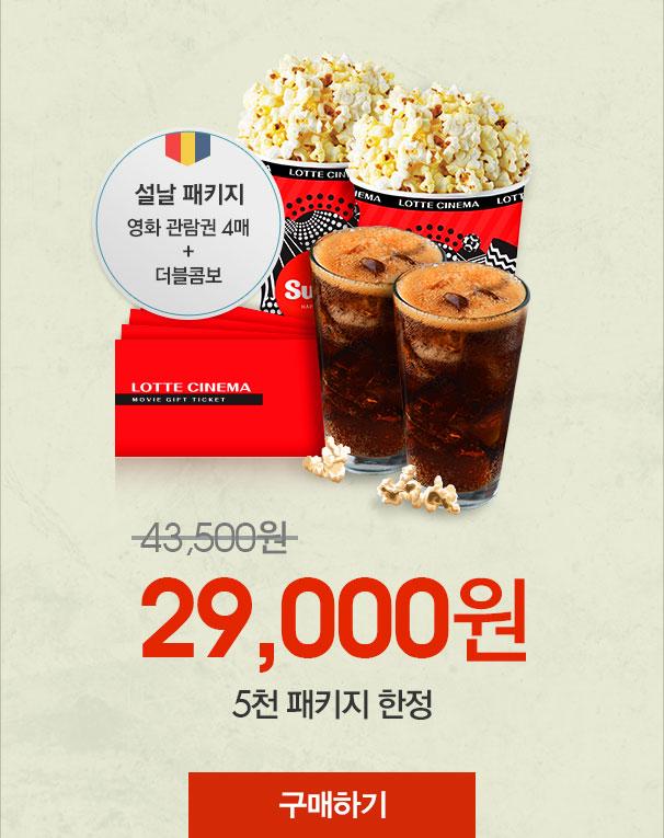 [롯데시네마] 영화관람권 4매 +더블콤보 (29,000/무료)