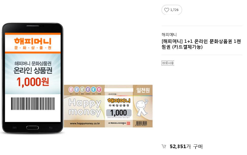 해피머니, 컬쳐랜드 각각 구매가능합니다 |