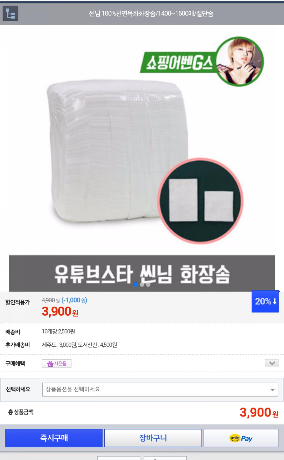 로드샵 입구에서 호갱 끌어들이기용으로 주는 화장솜이랑 비슷한 품질인 것 같기도 하구요