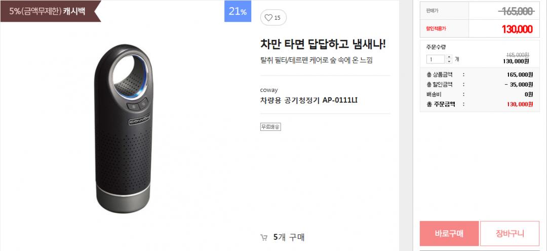 차량 공기청정기를 고가 제품 쓰기는 뭔가...많이 아쉽습니다^^