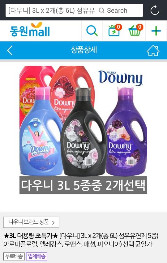 ★3L 대용량 초특가★ [다우니] 3L x 2개(총 6L) 섬유유연제 5종(아로마플로럴, 엘레강스, 로맨스, 패션, 피오니아) 선택 균일가