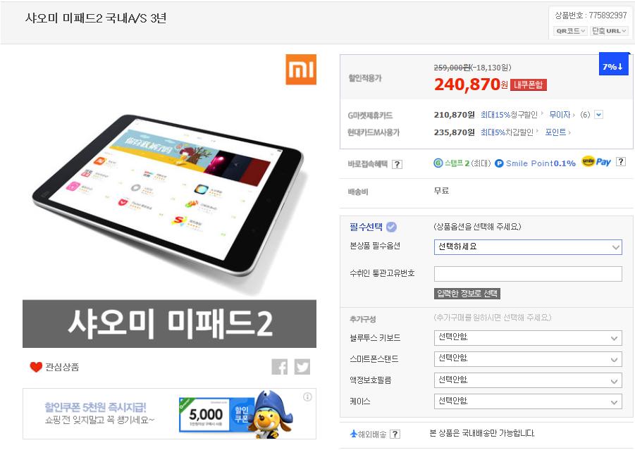 미패드 검색해보니깐 현재 이 제품이 최저가네요