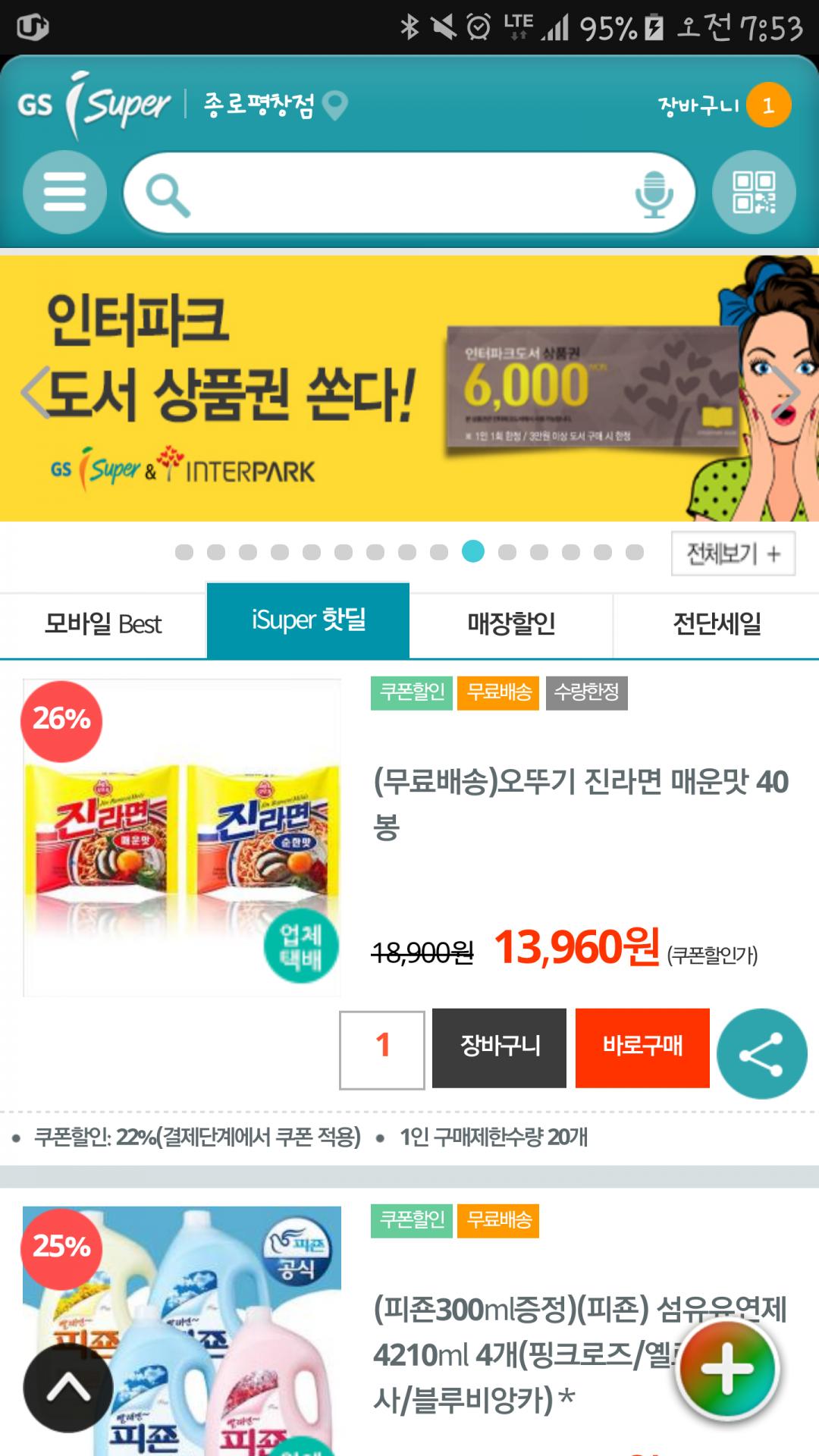 isuper핫딜 탭에 있습니다!