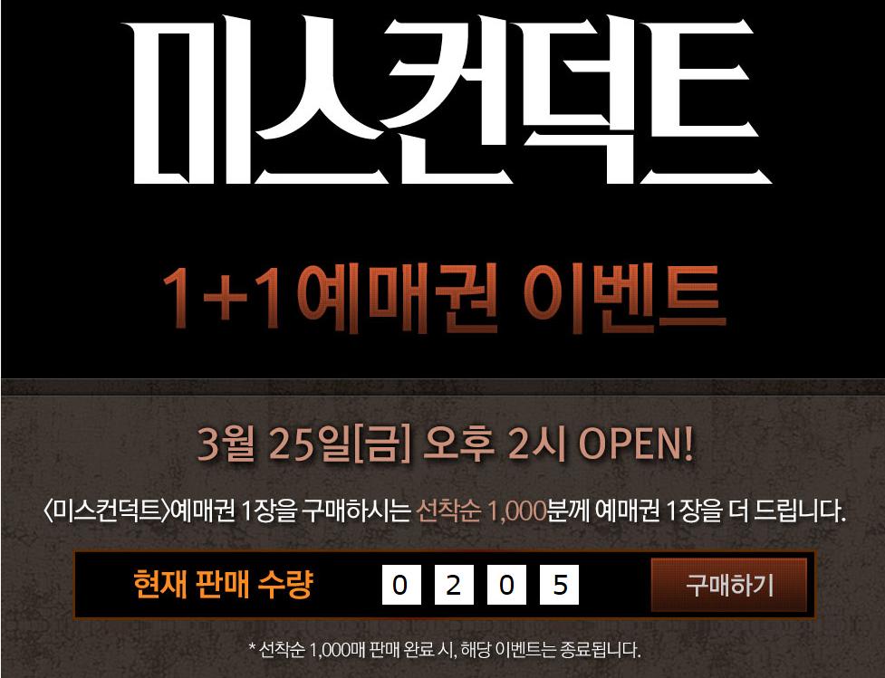 미스컨덕트 1+1 영화권 1,000장풀렸네요