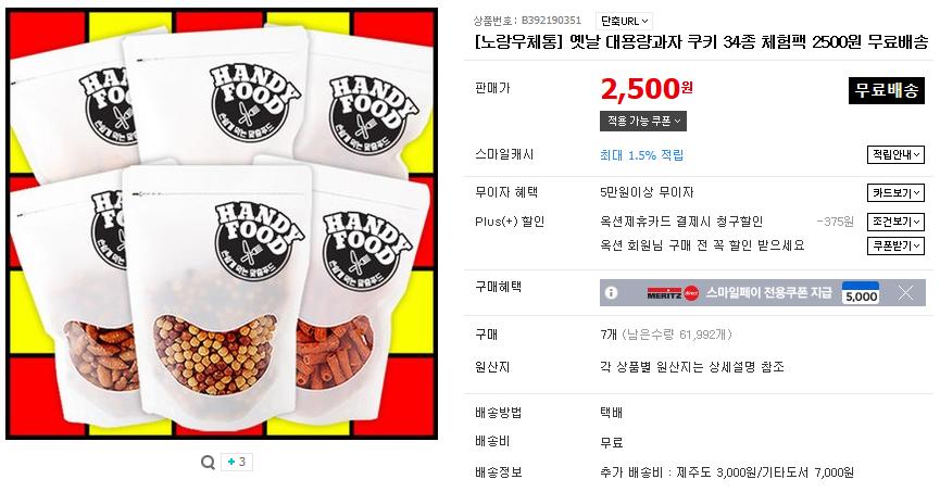옛날 대용량과자 쿠키 34종 체험팩 2500원 무료배송