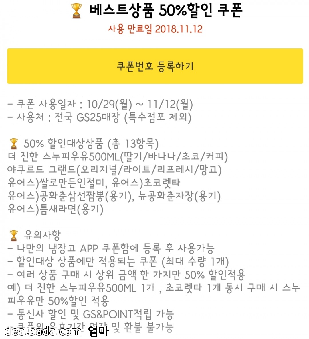 나만의냉장고 앱에서 쿠폰등록해서 사용하시면 됩니다