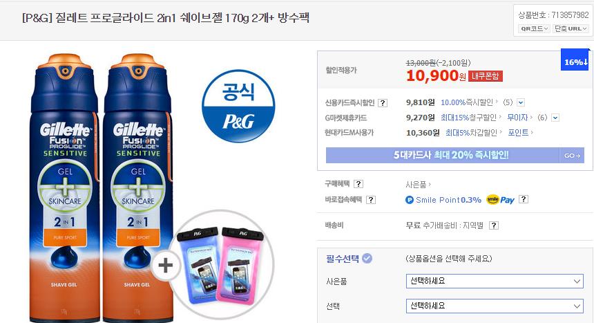 쉐이빙 젤 2개 7,630원 나옵니다~~!!