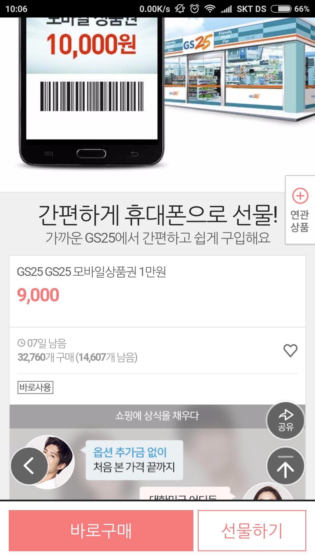 모바일팝은 GS에서 쓰시면 냉장고 어플하고 같이 쓰시면 편해요 GS편의점 기준 모바일팝 구입 시 (10% 할인-과거 판매할 때), 통신사 할인 15%, 모바일팝 할인 10%(반정도는 제외) 이렇게 하면 1000원짜리가 688.5원이 되죠 |