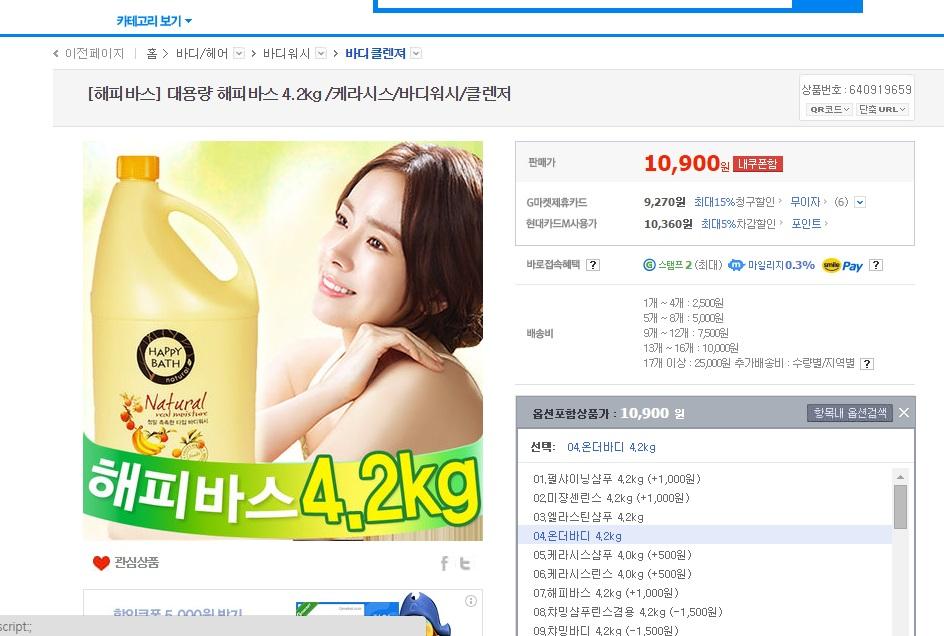 네이버 지식쇼핑에서 찾아봐도 어디에는 해피바스꺼가 몇백원 싸고 어디는 차밍 바디워시가 싸고