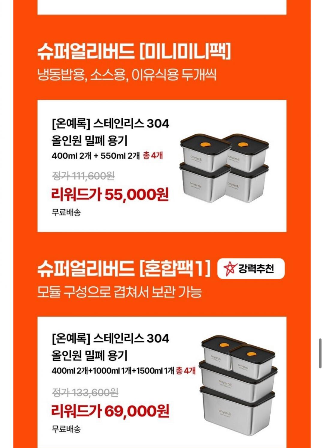 냉장보관도 용이할 거 같고, 사이즈 및 구성도 다양하네요