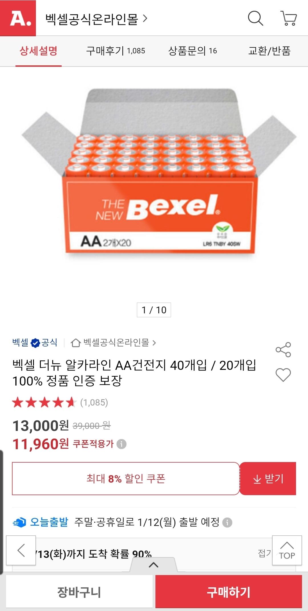 [옥션]백셀 더뉴 알카라인 AA건전지 40입 11960원 / 무료 > 국내핫딜